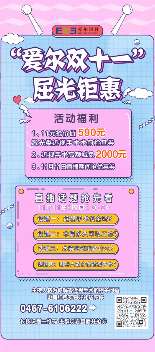 雞西愛爾眼科醫(yī)院近視手術雙十一鉅惠來襲!