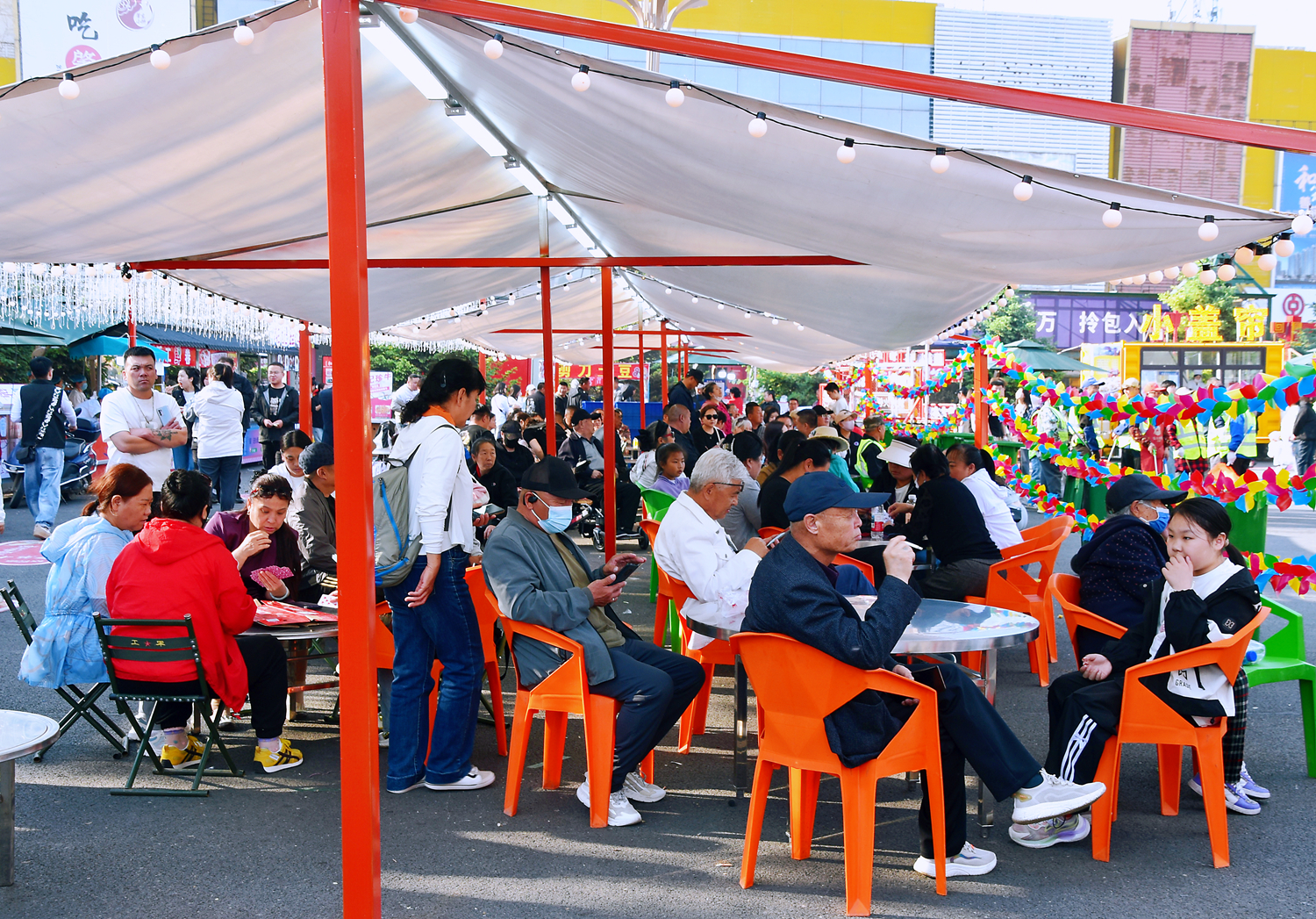 活動現(xiàn)場,肇東小餅作為“當家招牌”,搭配創(chuàng)新口味和工藝,吸引游客駐足?!皼]想到這里的夜市這么大,太有氛圍了,過癮!”一位來自哈爾濱的游客說。演藝互動現(xiàn)場,架子鼓表演、動感單車表演火力全開,震撼人心的演出和動感十足的節(jié)拍,點燃了現(xiàn)場氣氛。在動靜相宜的娛樂休閑區(qū),“筆落驚鴻·墨染乾坤”肇東傳統(tǒng)書畫品鑒會、“小餅香里品書香”觀書展,讓文化在煙火氣中生生不息,當美食與文學邂逅,字里行間品風味,唇齒間留遐想,世間滋味便不可辜負。