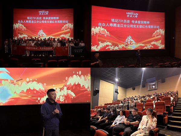 為深切緬懷革命先輩,大力弘揚(yáng)愛國(guó)主義精神,進(jìn)一步增強(qiáng)全體人員的歷史責(zé)任感與崗位擔(dān)當(dāng)意識(shí),合眾人壽黑龍江分公司黨支部組織開展“銘記731歷史,傳承愛國(guó)精神”紅色觀影活動(dòng)。在黨支部書記的帶領(lǐng)下,分公司黨員、入黨積極分子、內(nèi)勤全體員工及個(gè)險(xiǎn)/銀保/收展渠道外勤黨員共同參與,通過觀看歷史題材影片《731》,重溫那段刻骨銘心的歷史。