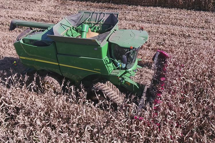 同時(shí),農(nóng)場也注重農(nóng)機(jī)裝備的技術(shù)保障作用,為高效利用 “良機(jī)” 提供支撐。今年秋收前,農(nóng)場 32 臺(tái)大型玉米收獲機(jī)全部更新帶底刀的玉米割臺(tái),通過割臺(tái)的更新進(jìn)一步提升農(nóng)場玉米秋收的效率與質(zhì)量。