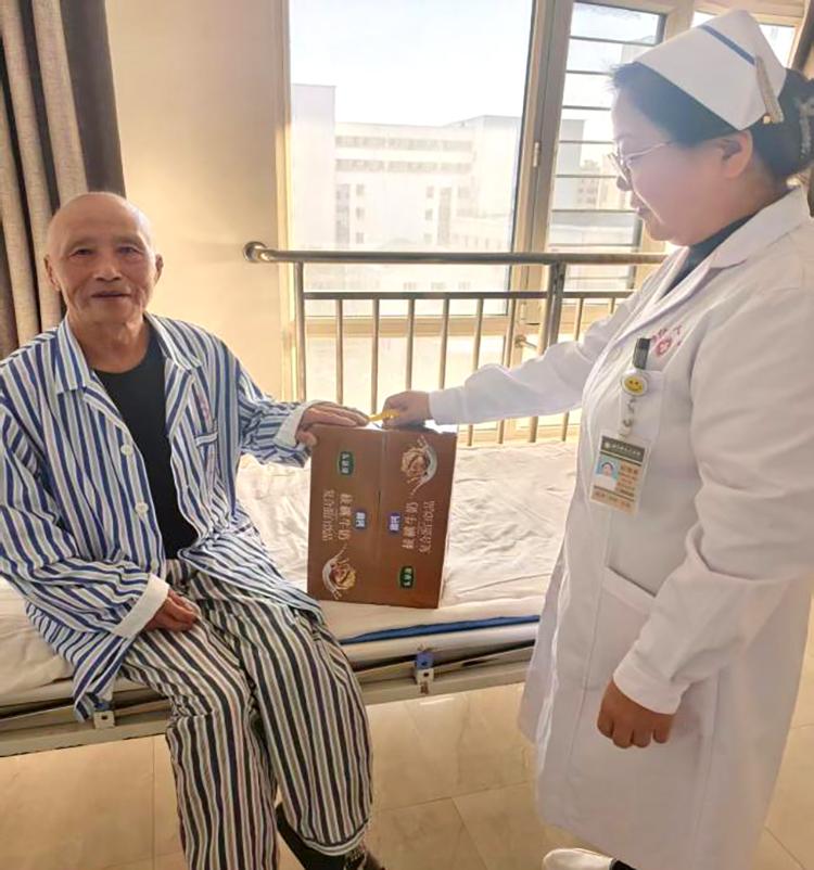 禮品雖小,情意濃重。開展活動期間,醫(yī)護人員們帶著精心準備的小禮品,走進每一位60歲以上老年患者的病房。這些小禮品雖然價格并不昂貴,但卻飽含著對患者的深深祝福。柔軟舒適的保暖襪,為患者在漸冷的霜降時節(jié)增添一份溫暖;營養(yǎng)豐富的滋補品,助力患者增強身體抵抗力;寓意吉祥的平安符,寄托著對患者早日康復的美好期許。當醫(yī)護人員將一份份小禮品送到患者手中時,患者們的臉上都洋溢著驚喜與感動的笑容,紛紛對科室的貼心關懷表示感謝。患者劉阿姨激動地說:“在這個特殊的節(jié)日里,收到你們送的禮物,心里特別溫暖”。