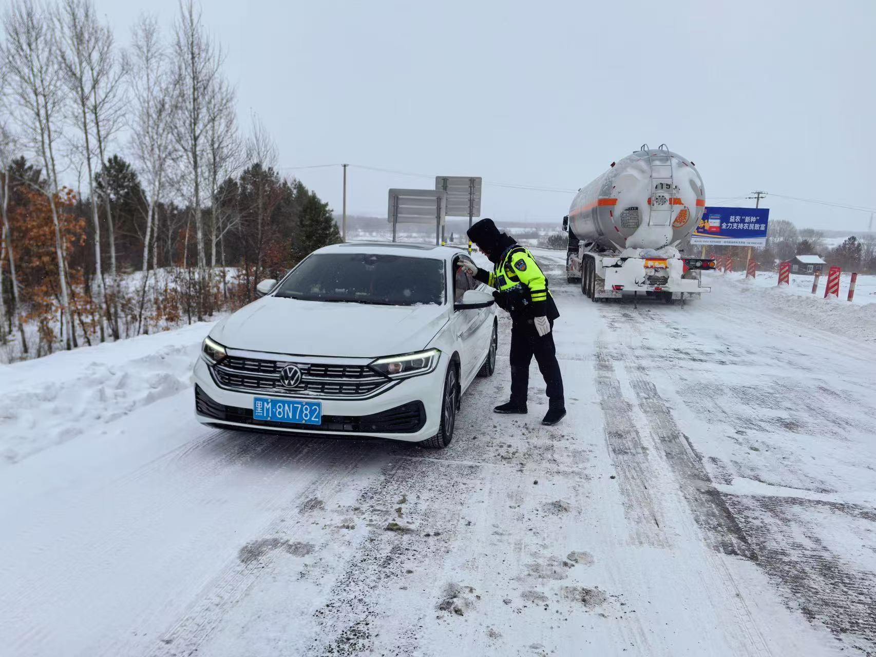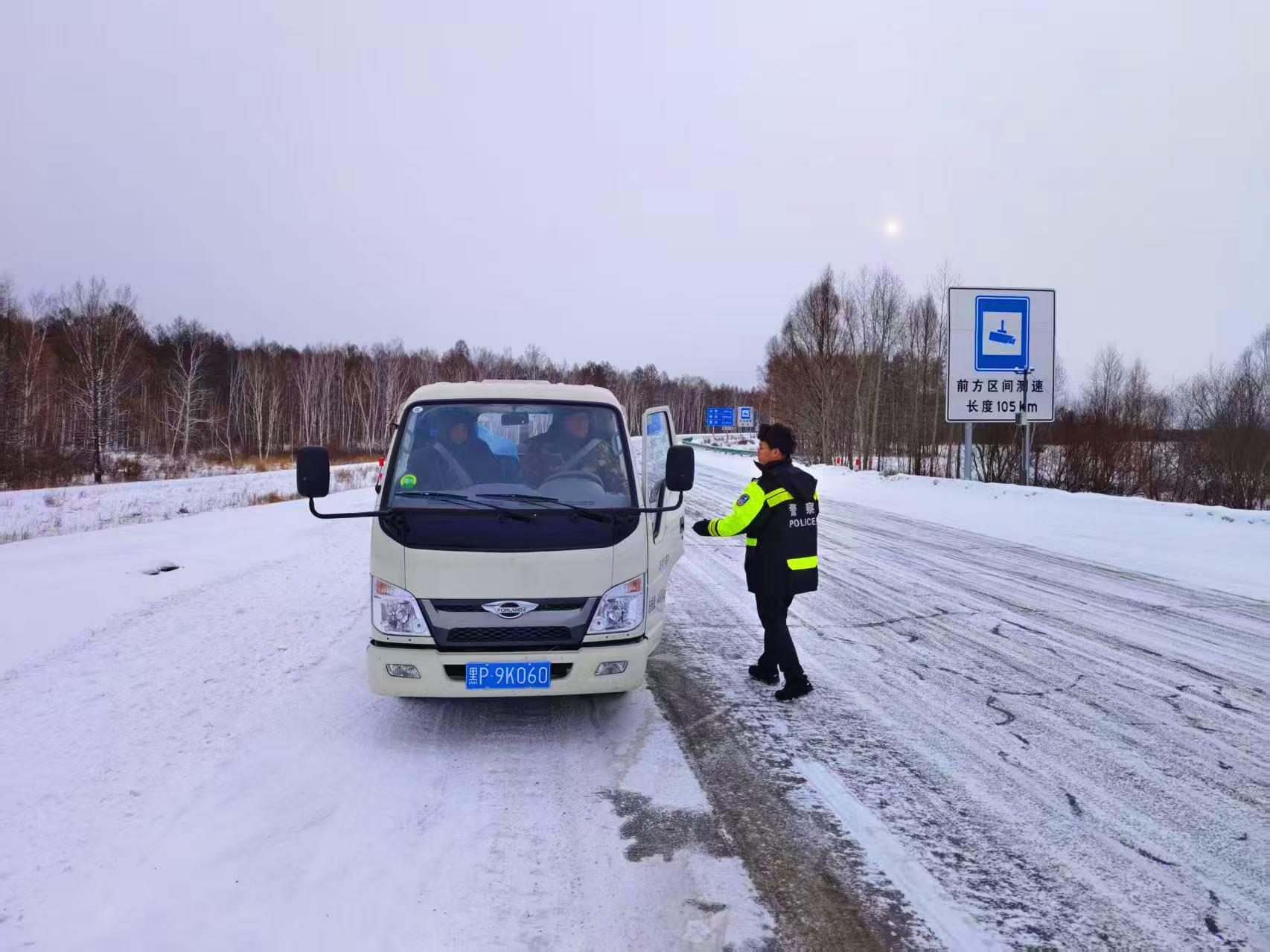 隨后,民輔警駕駛警車小心翼翼地穿行在積雪路段,一邊緩慢行駛,一邊實時觀察路面情況,并不時向游客講解雪天出行安全常識,提醒景區(qū)內棧道濕滑需謹慎慢行。臨別前,呼瑪公安民輔警再次叮囑游客注意游覽安全,及時關注天氣變化和返程路況,必要時可隨時聯系景區(qū)執(zhí)勤崗點求助。