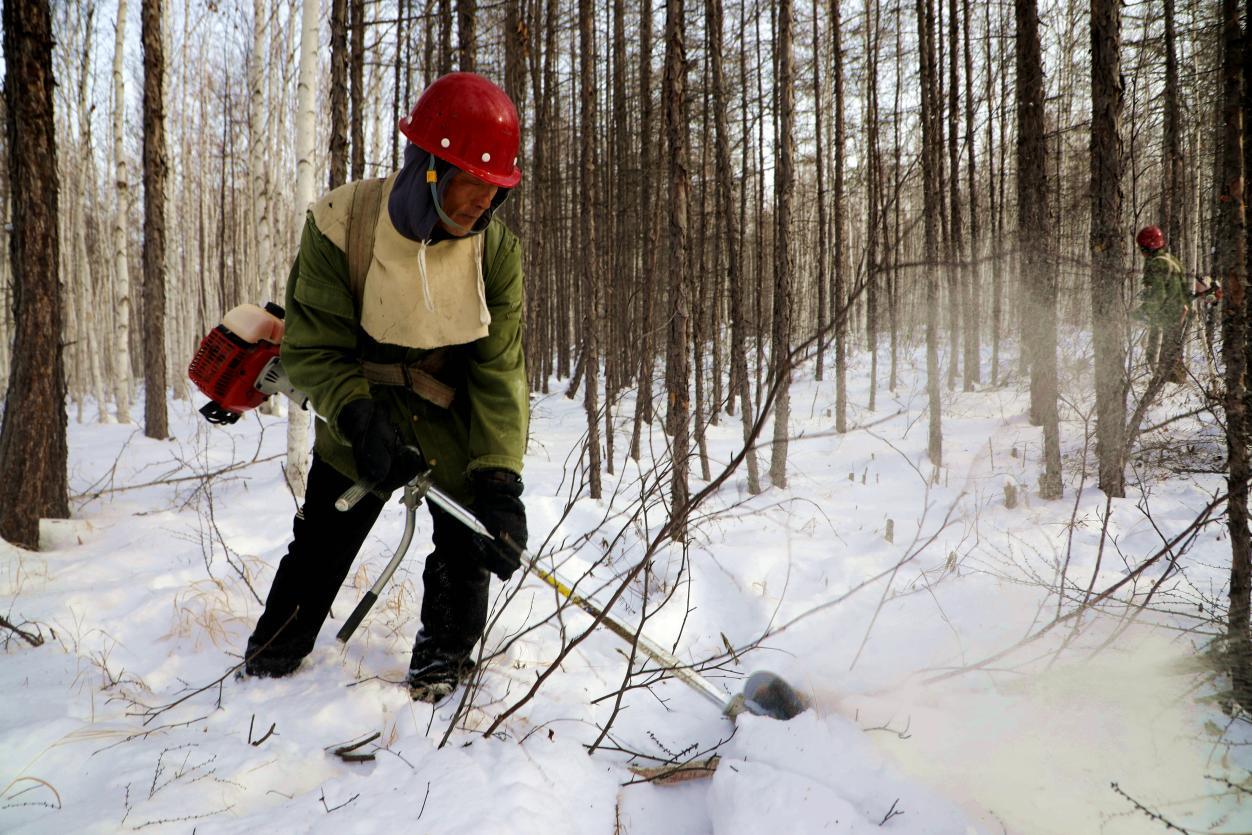 在凜冽寒風(fēng)中,這些“森林園丁”手持割灌機伐除病腐木、枯立木和風(fēng)折木等被害木,為目標(biāo)樹和保留木騰出更多生長空間,以堅守和付出守護著林海生機。“每天收工回來,鞋子、棉褲全是濕的,但看著樹木經(jīng)過修剪能茁壯成長,心中就充滿了成就感。”連續(xù)9年參與冬季森林撫育工作的作業(yè)組組長張國生,道出了所有撫育工作人員的心聲。