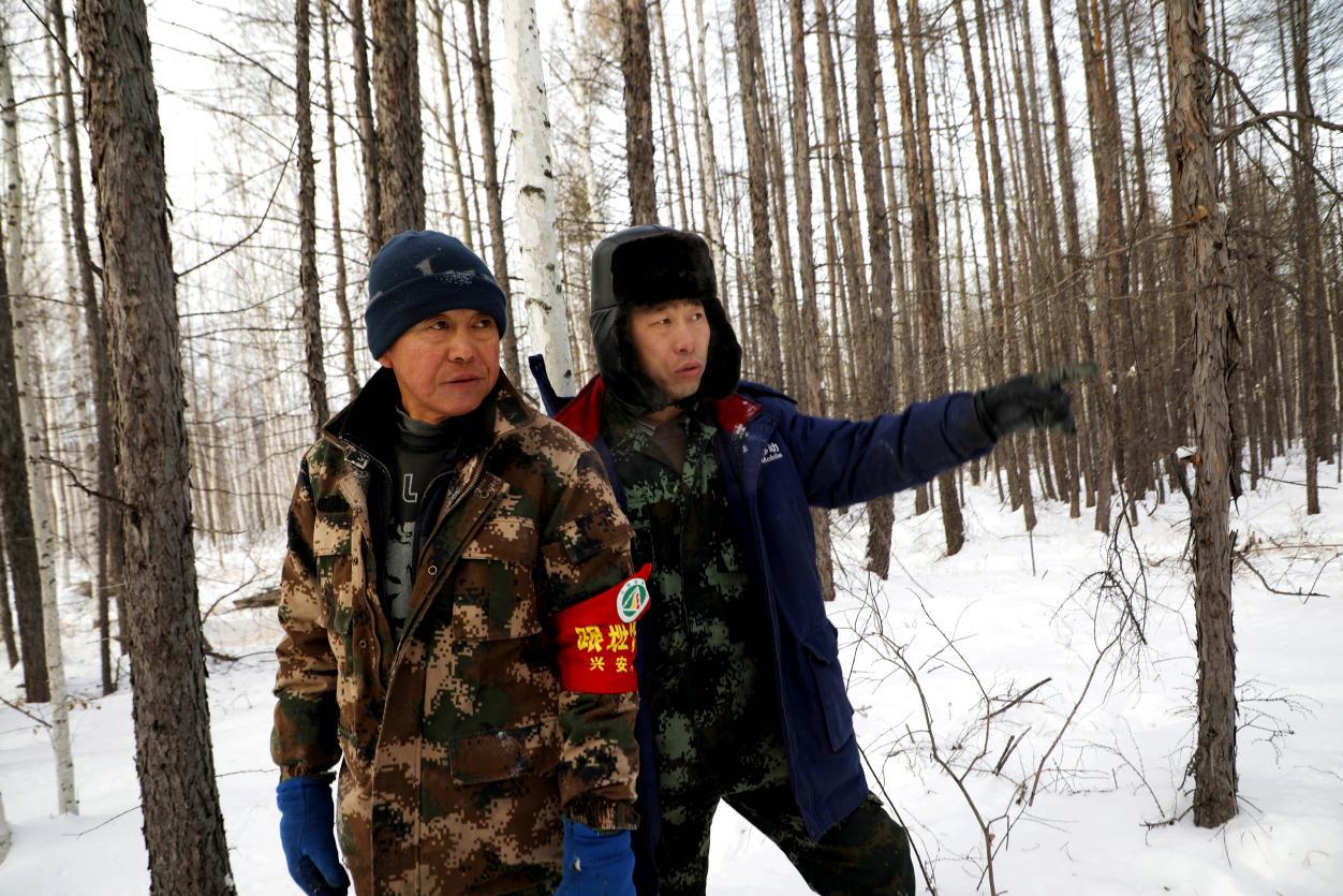 阿木爾林業(yè)局生態(tài)修復(fù)管理科驗收員劉明(右)跟班作業(yè)指導(dǎo)生產(chǎn)(王力 攝)