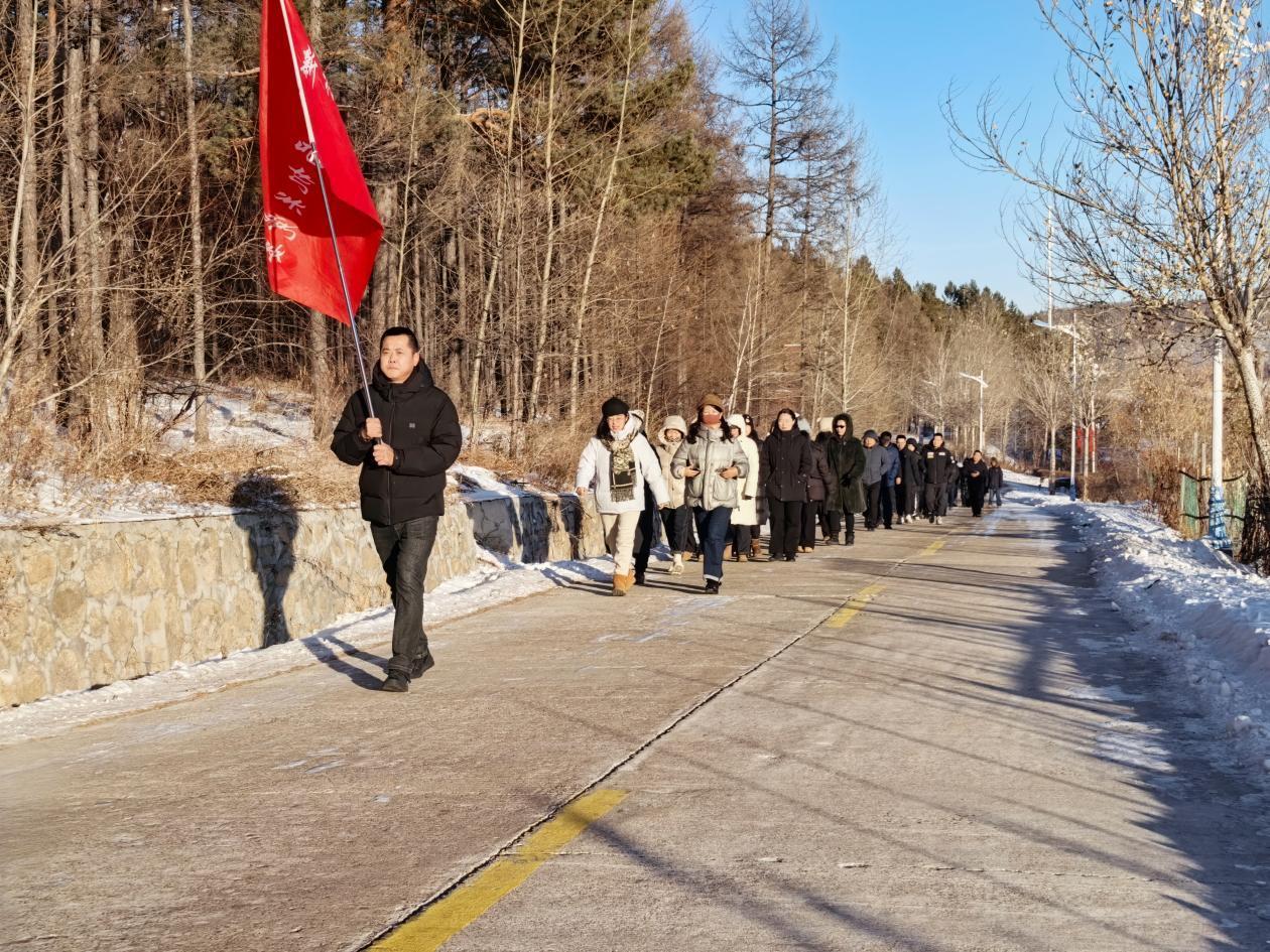 活動(dòng)中,150余名林業(yè)局機(jī)關(guān)干部職工在原林園門前集結(jié)。隨著出發(fā)指令下達(dá),徒步隊(duì)伍沿著預(yù)設(shè)路線有序前行,有經(jīng)驗(yàn)豐富的職工帶頭穩(wěn)步前行,不時(shí)提醒身旁同事注意腳下安全。年輕干部們活力滿滿,時(shí)而相互鼓勁,時(shí)而駐足欣賞沿途銀裝素裹的冬日盛景,盡管天氣寒冷,但絲毫未影響大家的參與熱情。經(jīng)過(guò)兩個(gè)小時(shí)的徒步,大家攜手并進(jìn)順利抵達(dá)終點(diǎn)。