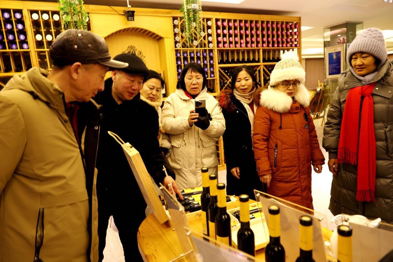 黑龍江省詩詞協(xié)會(huì)采風(fēng)團(tuán)成員在北極冰藍(lán)莓酒莊了解酒文化和酒品(王力 攝)