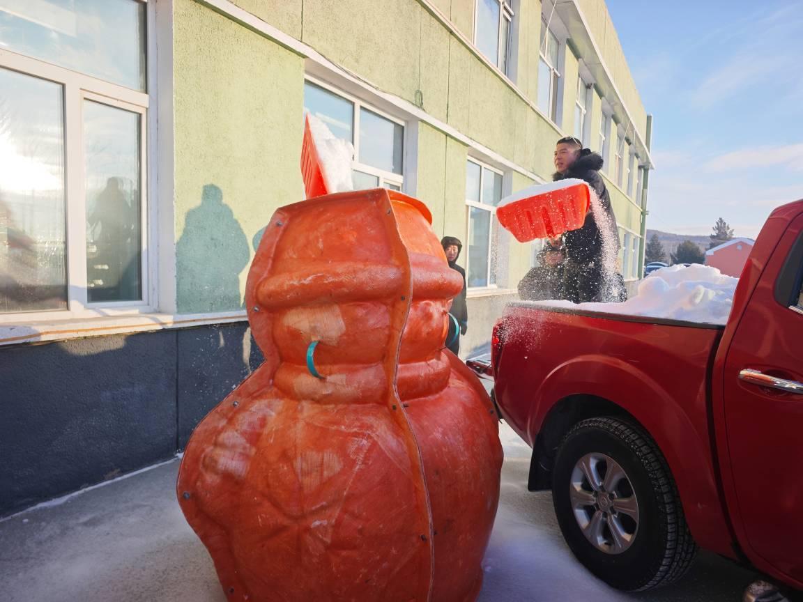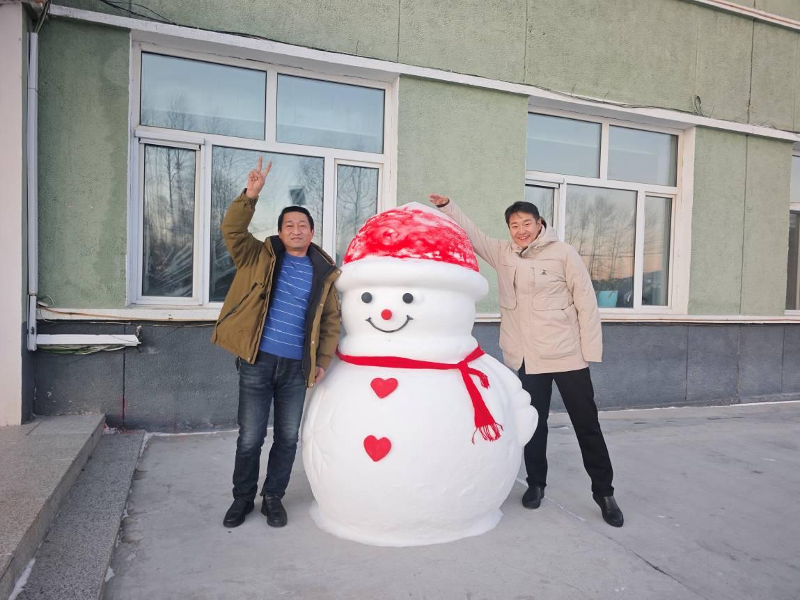 活動中,林場干部職工分工協(xié)作,有的手持鐵鍬鏟起蓬松的積雪,精準填入雪人模具,用力按壓緊實,確保雪人身軀穩(wěn)固有型;有人手持小鏟子,細細修整雪人的輪廓,讓雪人的外觀更加美觀......鮮紅的圍巾繞在雪人脖頸,在白雪的映襯下格外耀眼,彩色涂料則成了創(chuàng)意的畫筆,大家或勾勒出彎彎的微笑嘴角,或點上心形的紐扣,給雪人增添了幾分俏皮與可愛。經(jīng)過大家的共同努力,一個個憨態(tài)可掬的“白胖子”便悉數(shù)亮相,成為林場冬日里一道獨特的風(fēng)景線。