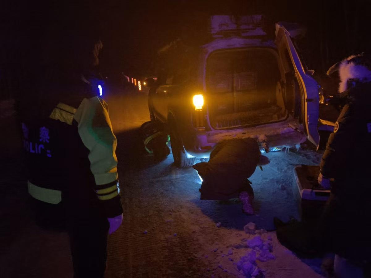黑龍江經(jīng)濟(jì)網(wǎng)訊(婁暢)近日,呼瑪縣轄區(qū)強(qiáng)降溫、降雪伴隨大風(fēng)天氣,給道路通行帶來極大安全隱患,呼瑪縣公安局民輔警按照惡劣天氣應(yīng)急處置預(yù)案開展巡邏防控,將巡邏管控與便民服務(wù)相結(jié)合,及時(shí)為群眾解決出行難題。12月25日晚,民輔警巡邏中及時(shí)救助一臺(tái)爆胎車輛。