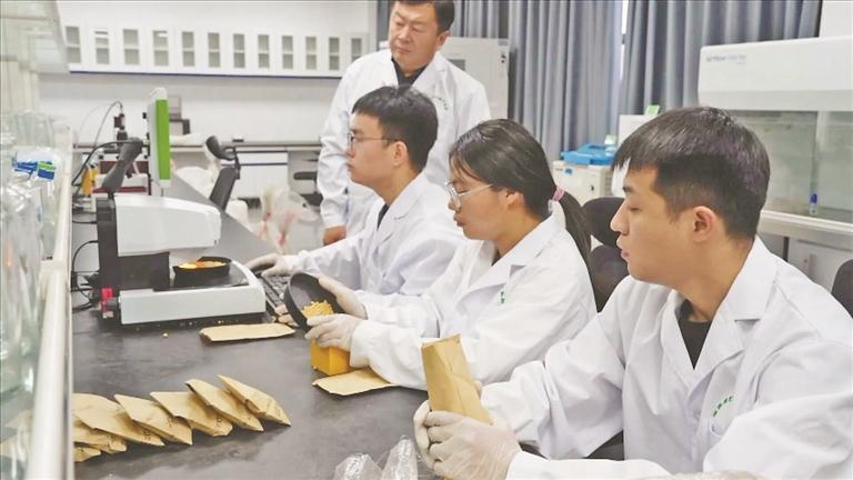 在國家現(xiàn)代農(nóng)業(yè)產(chǎn)業(yè)園的實(shí)驗(yàn)室,來自東北農(nóng)業(yè)大學(xué)的研究生正在對大豆種子進(jìn)行電腦數(shù)粒、離心分析密度等工作,為選育出高產(chǎn)、優(yōu)質(zhì)、多抗的專用大豆品種提供基礎(chǔ)數(shù)據(jù)支撐。