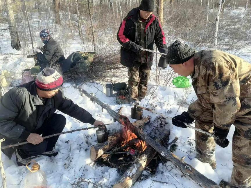 餐風(fēng)飲雪不言苦,苦中作樂顯擔(dān)當(dāng)。正午時(shí)分,忙碌的作業(yè)暫告一段落,林間背風(fēng)處便成了臨時(shí)“餐桌”。職工們聚在一起,圍坐在火堆旁,就著寒風(fēng),分享著熱氣騰騰的盒飯。沒有舒適的就餐環(huán)境,只有白雪皚皚的林海作伴;沒有豐盛的佳肴,只有簡單的飯菜暖胃暖心。大家邊吃邊聊,交流著當(dāng)天的作業(yè)進(jìn)度,分享著林區(qū)里的新鮮事,爽朗的笑聲回蕩在林間。艱苦的條件絲毫沒有消減大家的干勁,反而凝聚起攻堅(jiān)克難的強(qiáng)大合力,這便是育英林場人獨(dú)有的“苦中作樂”,更是對(duì)綠水青山的執(zhí)著堅(jiān)守。