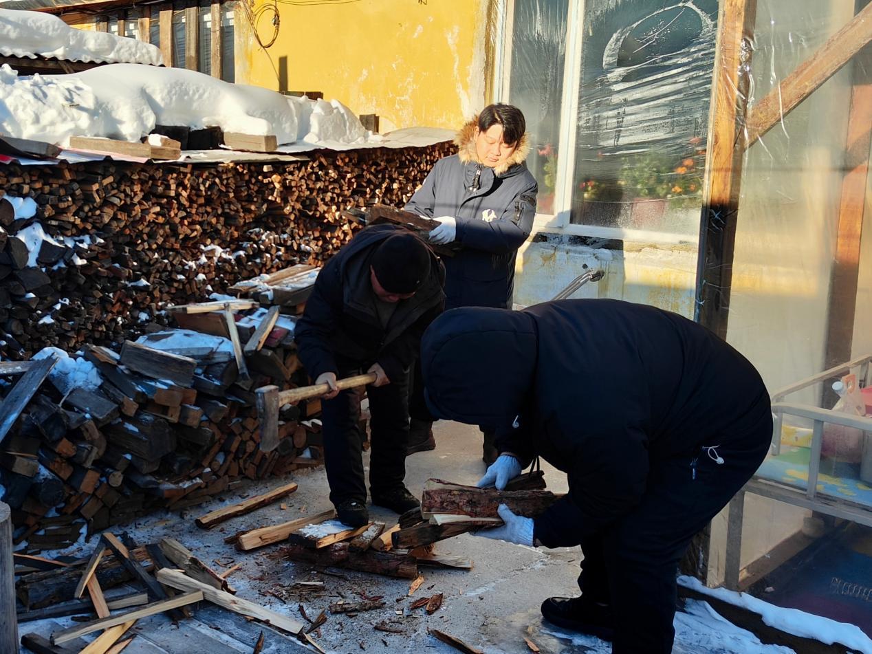 林場黨員先鋒隊隊員幫助困難職工準(zhǔn)備取暖燒柴(陶文玲 攝)