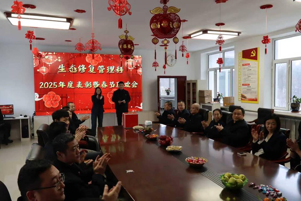 活動在歡快的音樂中拉開帷幕。主持人深情回望2025年,這一年,科室全體同仁深耕生態(tài)修復(fù)一線,頂風(fēng)冒雨、攻堅克難,圓滿完成各項工作任務(wù),用實干守護(hù)綠水青山,用堅守詮釋生態(tài)人的初心使命。生態(tài)修復(fù)管理科科長于召民為活動致辭,既肯定了科室全體干部職工過去一年的辛勤付出,也為2026年工作指明方向、注入動力,贏得全場陣陣掌聲。