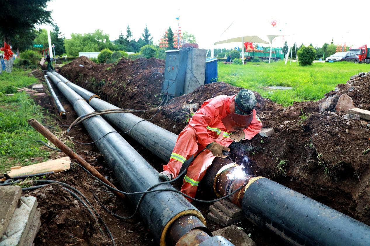 阿木爾林業(yè)局專業(yè)技術(shù)工人在鋪設供暖主管線,解決林海街平房用戶不熱問題(王力 攝)