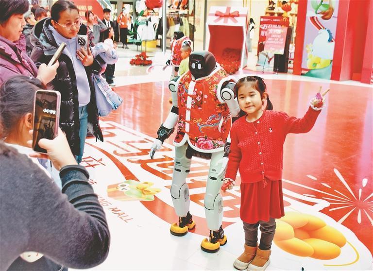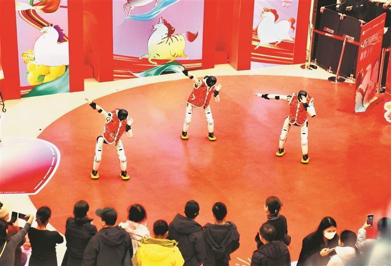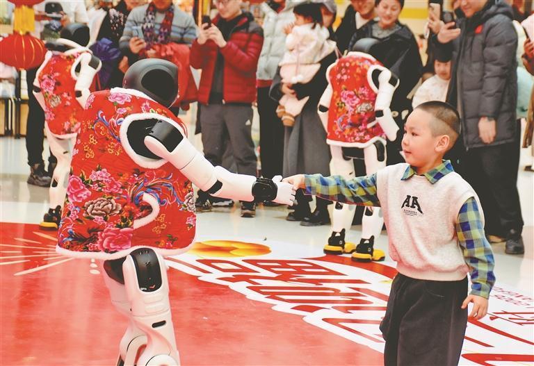 19日,正月初三。哈爾濱市道里區(qū)一家大型商場(chǎng)舉行了機(jī)器人舞蹈表演,吸引許多市民游客駐足觀(guān)看。走進(jìn)場(chǎng)地的三個(gè)機(jī)器人身高1.5米左右,穿著紅色棉坎肩,十分喜慶。在音樂(lè)伴奏下,它們翩翩起舞,動(dòng)作整齊劃一。表演結(jié)束后,機(jī)器人走進(jìn)人群,與大家握手、合影、互動(dòng)。春節(jié)假期,哈爾濱市多家商場(chǎng)都推出了機(jī)器人表演,讓市民游客與最新科技來(lái)個(gè)親密接觸。