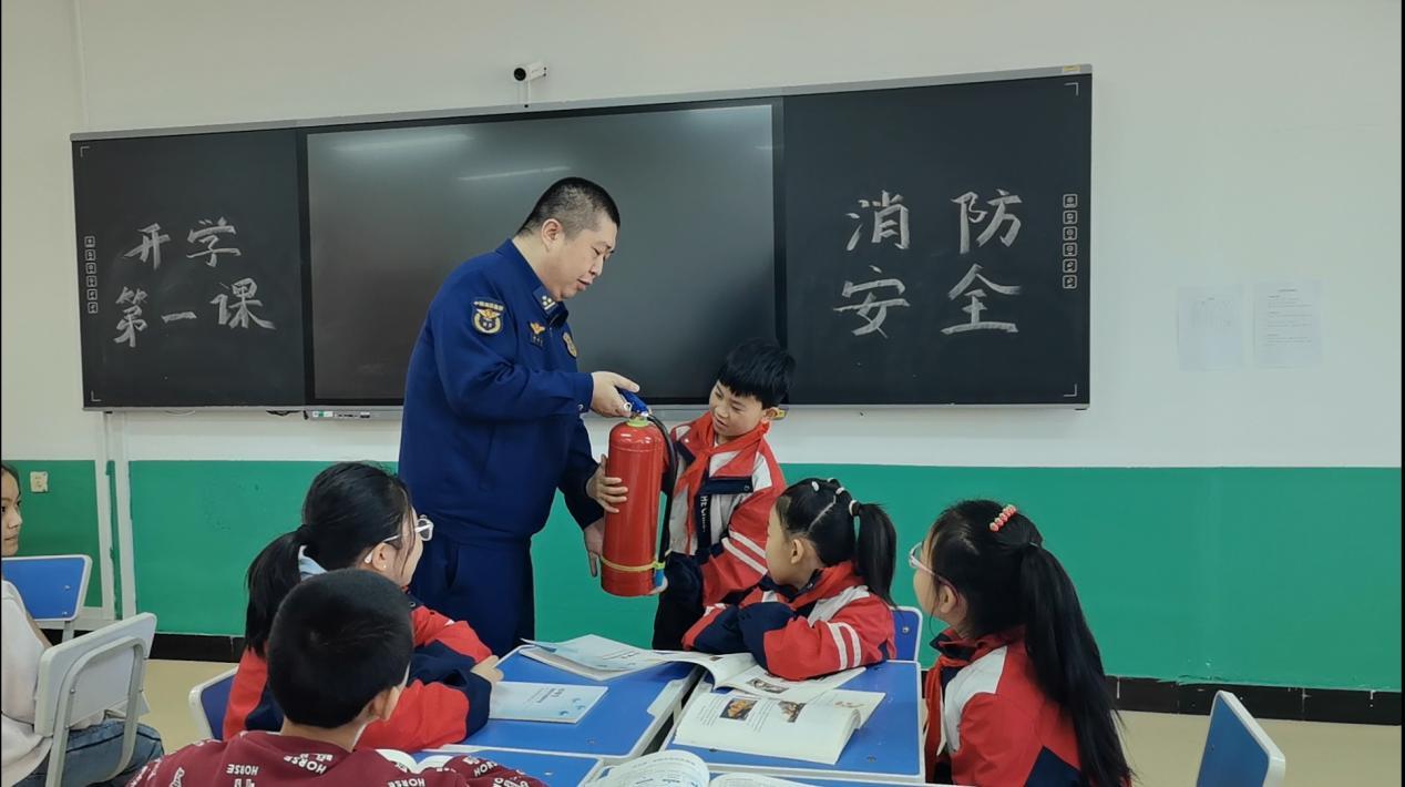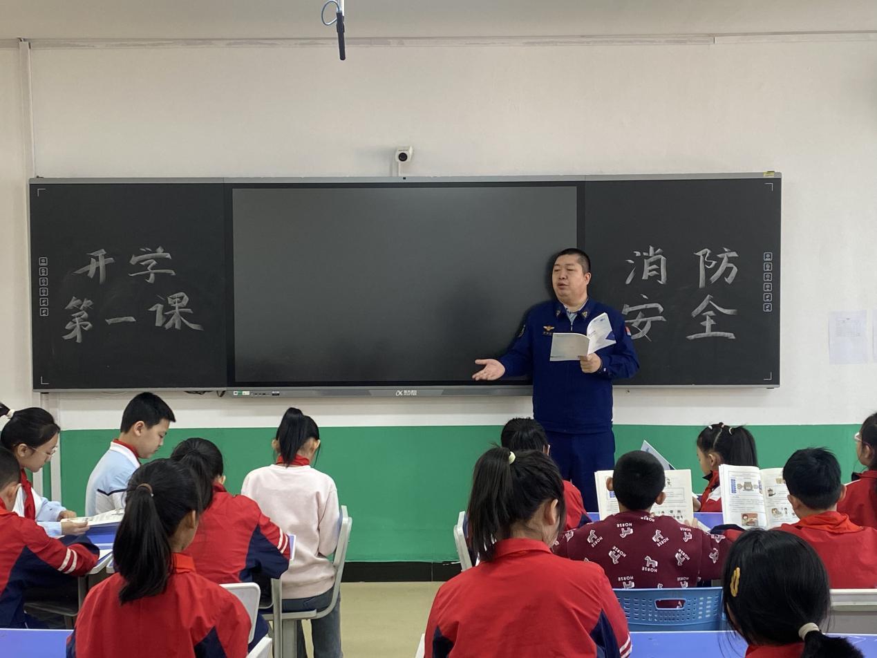 消防宣傳員在課堂上講解《中小學生消防安全讀本》中的消防安全常識(胡春磊 攝)