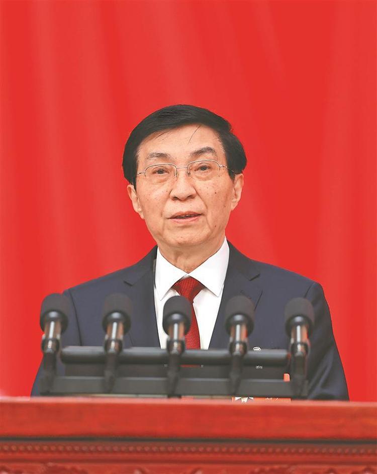 王滬寧代表政協(xié)第十四屆全國委員會(huì)常務(wù)委員會(huì),向大會(huì)報(bào)告工作。