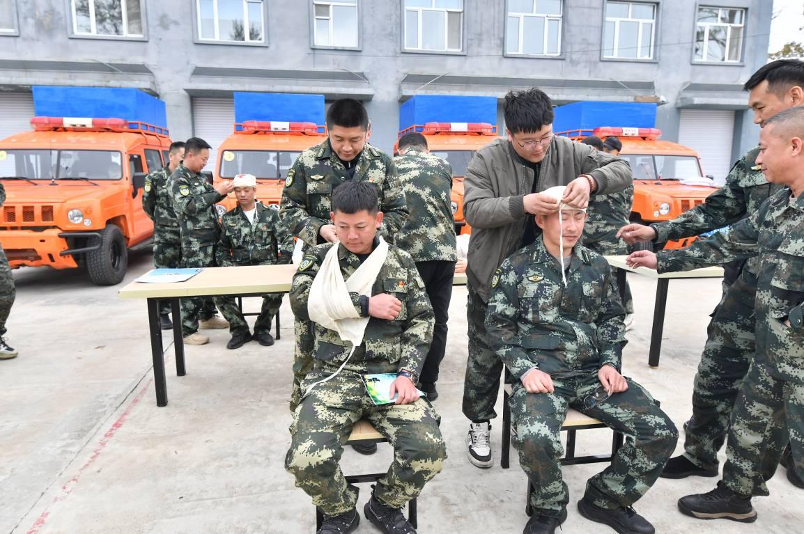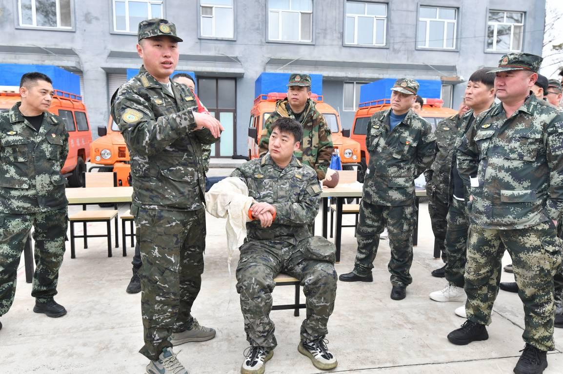 創(chuàng)傷包扎實(shí)操區(qū)同樣熱火朝天,參訓(xùn)人員3人一組,互相充當(dāng)“模擬傷員”,在醫(yī)護(hù)人員的一對一指導(dǎo)下,反復(fù)練習(xí)頭部、手部、腿部等不同部位的包扎方法?!爸霸诨饒鲇龅綉?zhàn)友受傷,只能憑著經(jīng)驗(yàn)簡單處理,今天學(xué)的八字包扎法既牢固又省時(shí)間,下次再遇到類似情況就知道怎么規(guī)范操作了!”來自倭勒根林場的參訓(xùn)隊(duì)員一邊給隊(duì)友包扎手臂,一邊笑著和身邊的人分享學(xué)習(xí)感受。一上午的實(shí)操訓(xùn)練下來,不少隊(duì)員的手上都沾了不少醫(yī)用膠帶的膠漬,但每個(gè)人的臉上都寫滿了收獲的喜悅。