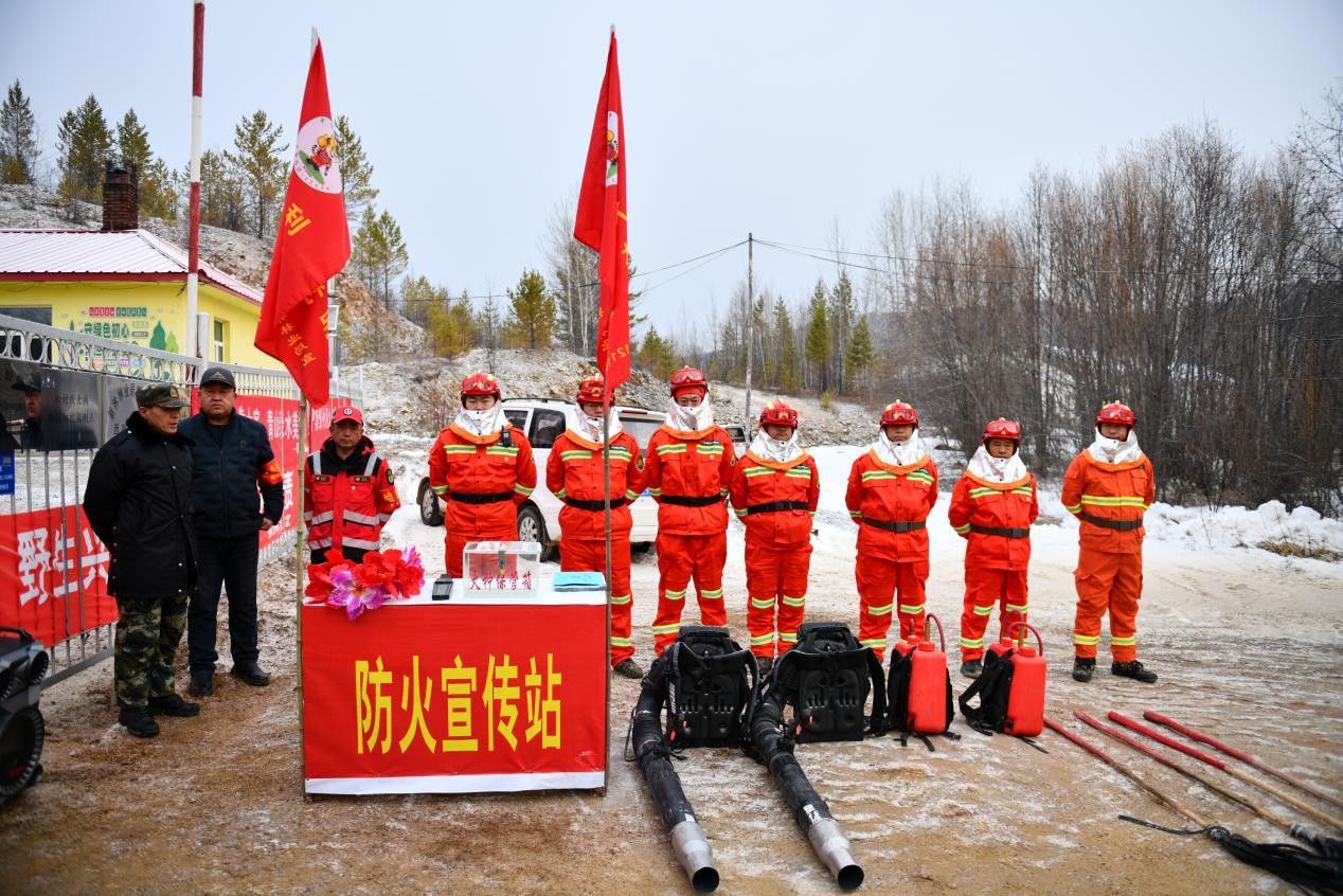 新林林業(yè)局宏圖林場在入山口設立防火檢查站(李楊 攝)